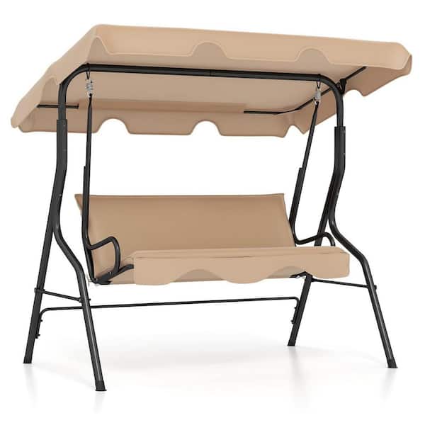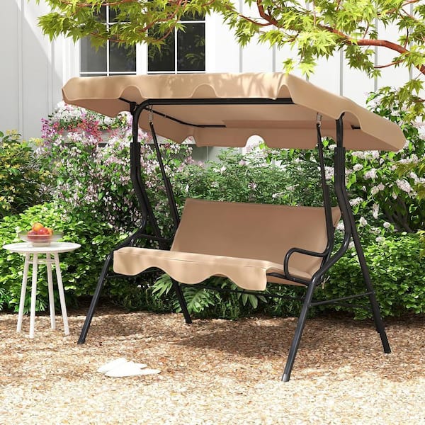 67.5 in. W Beige 3 Person Patio Swing, Patio Swing with Removable Cushion and Powder-Coated Steel Frame