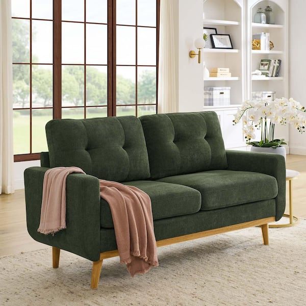 67.7 in. Wide Green Polyester Tufted Loveseat Sofa Wooden Legs, Upholstered 2-Seater Small Couch Cozy Couch Mini Couch