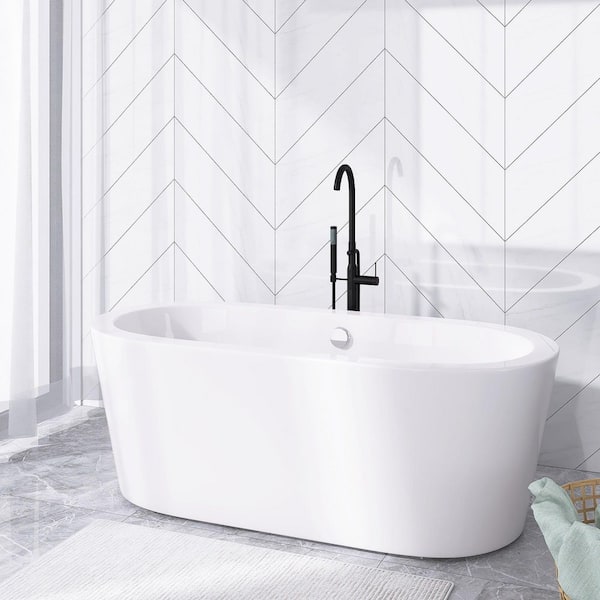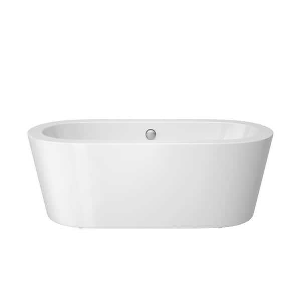 67 in. Acrylic Roll-Top Flatbottom Non-Whirlpool Bathtub in White