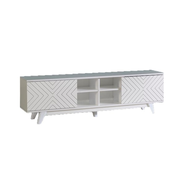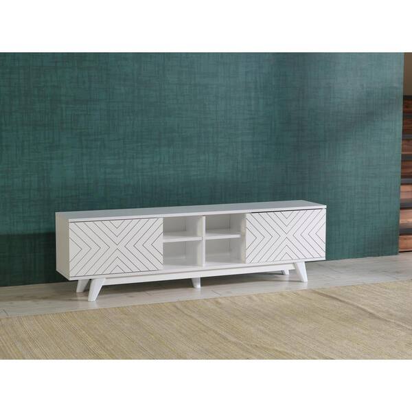 67 in. W White TV Stand with 0-Drawers Fits TV's up to 65 in. with 2 Doors