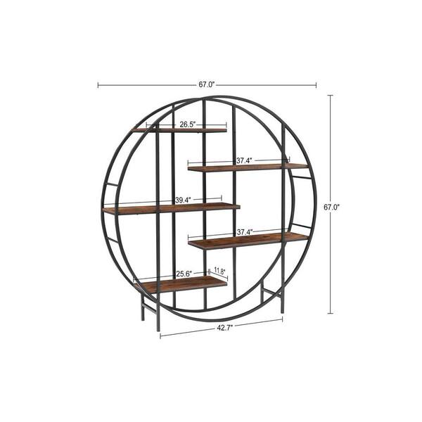67 in. W x 11.8 in. D Brown 5-Tier Metal Storage Rack, Decorative Wall Shelf for Storage, Garden Balcony Display Stand