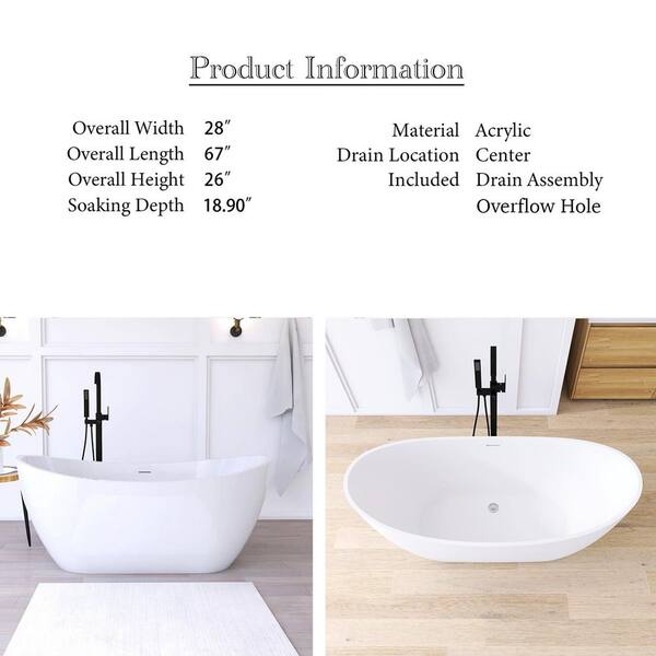 67 in. x 28 in. Acrylic Freestanding Soaking Bathtub in Glossy White