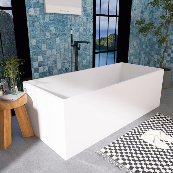 67 in. x 28 in. Stone Resin Solid Surface Freestanding Soaking Bathtub with Center Drain in Matte White