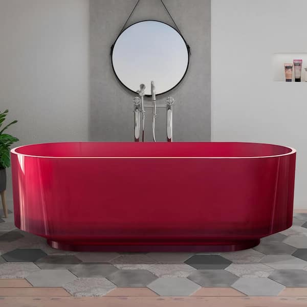 67 in. x 29.5 in. Soaking Bathtub with Center Drain in Clear Cherry Red