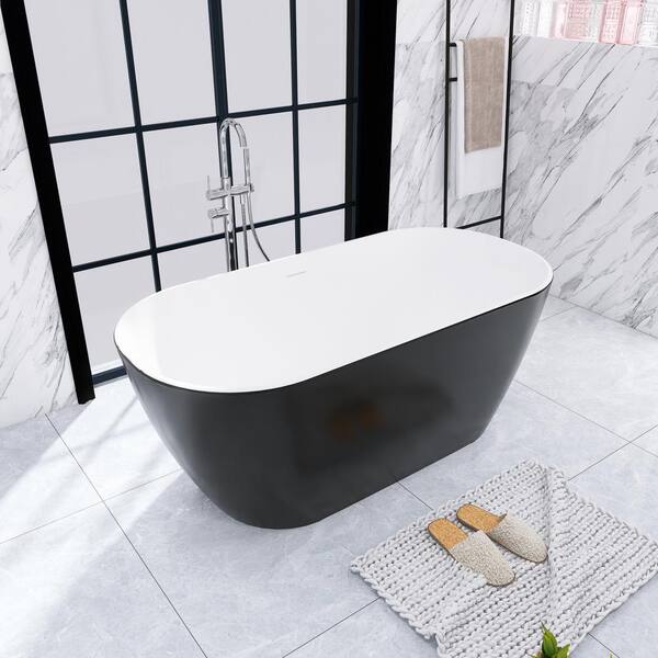 67 in. x 30 in. Acrylic Soaking Bathtub in Matte Black with Center Drain in Polished Chrome
