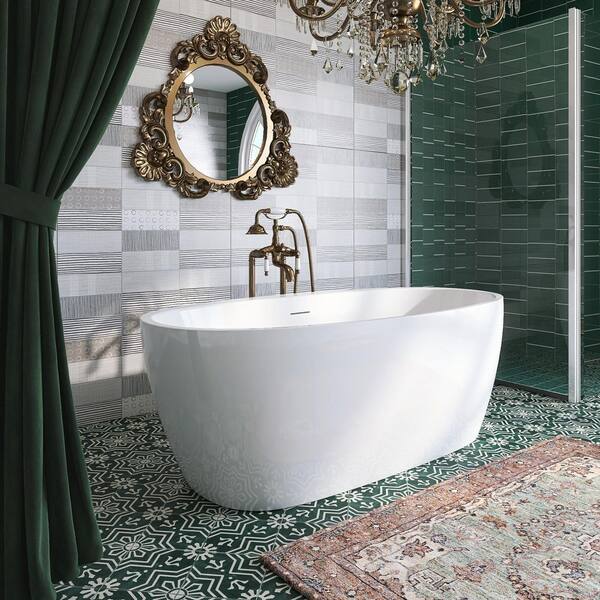 67 in. x 31.5 in. Acrylic Freestanding Flatbottom Soaking Bathtub in White