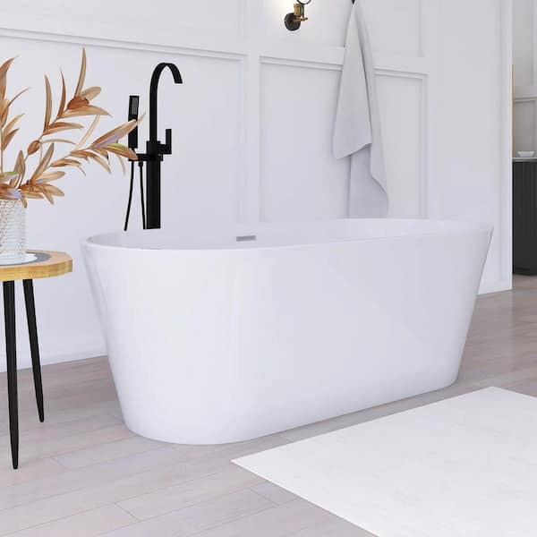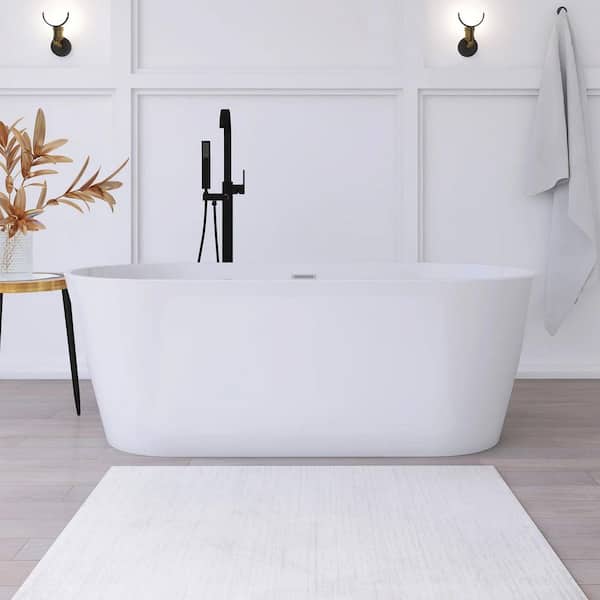 67 in. x 31 in. Acrylic Flatbottom Freestanding Soaking Bathtub in Glossy White