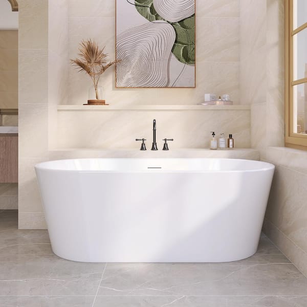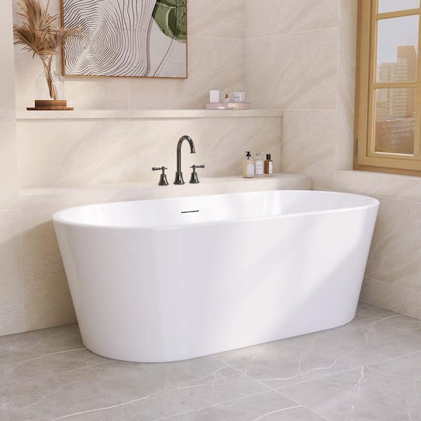 67 in. x 31 in. Acrylic Flatbottom Freestanding Soaking Bathtub in White