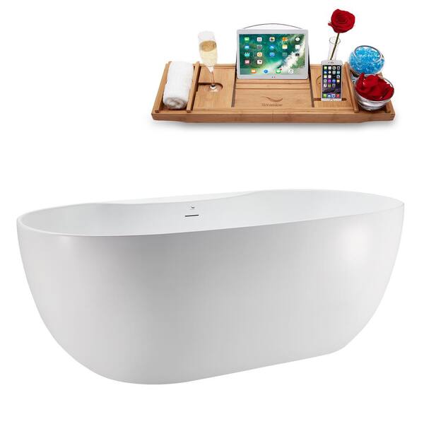 67 in. x 31 in. Acrylic Freestanding Soaking Bathtub in Glossy White with Brushed Nickel Drain