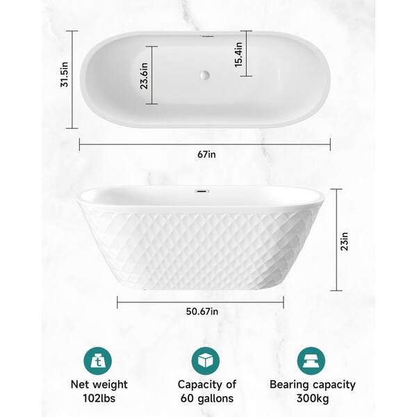 67 in. x 32 in. Soaking Bathtub with Reversible Drain in Glossy White