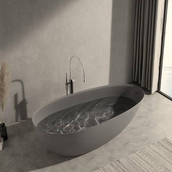 67 in. x 33.5 in. Stone Resin Flatbottom Solid Surface Freestanding Soaking Bathtub in Gray with Drain