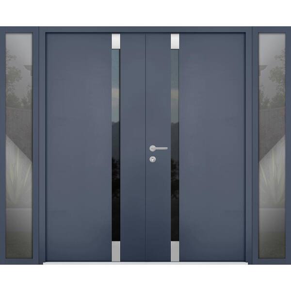 6777 96 in. x 80 in. Left Hand/Outswing 2 Side Tinted Glass Gray Graphite Steel Prehung Front Door with Hardware