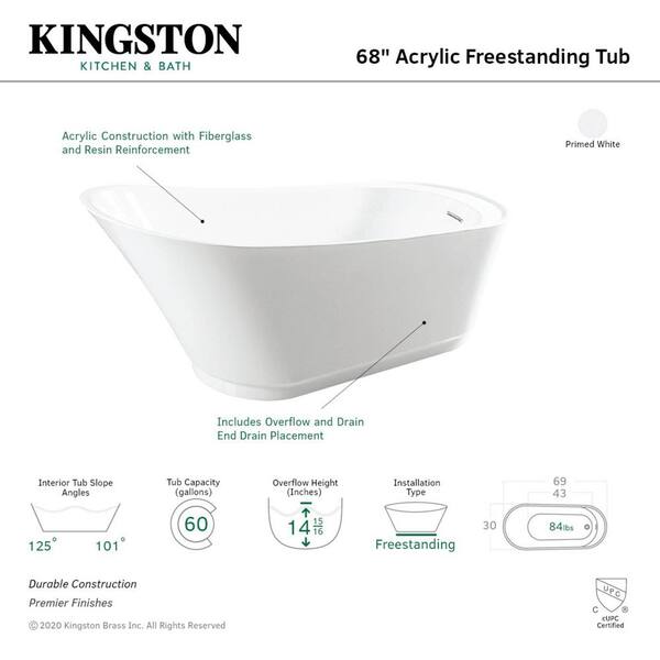 68.5 in. Acrylic Slipper Reversible Drain Oval Flatbottom Freestanding Bathtub in White