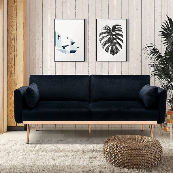 68.50 in. Black Velvet 2-Seater Loveseat with Conversion Functions