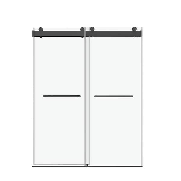 68 to 72 in. W x 76 in. H Double Sliding Frameless Shower Door, Soft-Close, 3/8 (10mm) Tempered Glass in Matte Black