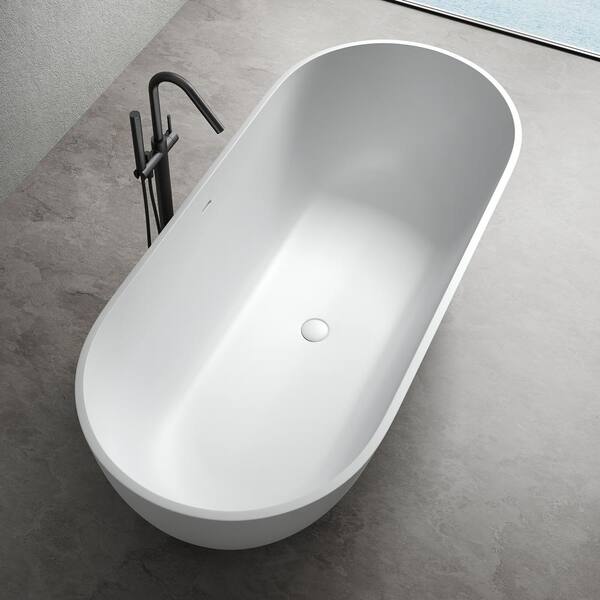 69 in. x 29.53 in. Stone Resin Solid Surface Soaking Bathtub with Center Drain in Matte White