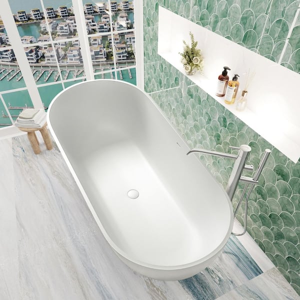69 in. x 30 in. Solid Surface Soaking Bathtub with Center Drain in Matte White