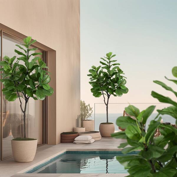 6FT Artificial Fiddle Leaf Fig Tree In Pot, Tall Faux Silk Ficus Trees with Natural Dry Grass and Lifelike Ficus Leaf