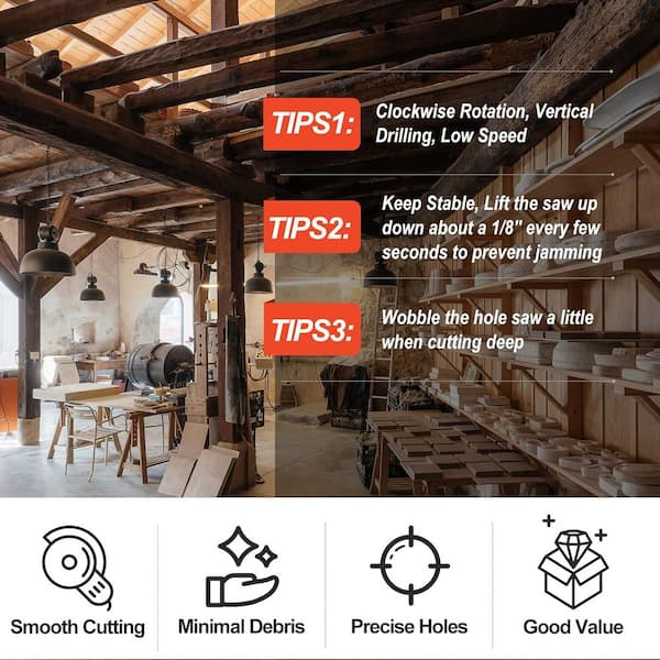 • Ideal to cut 7-1/4 diameter holes in wood, plastic, drywall