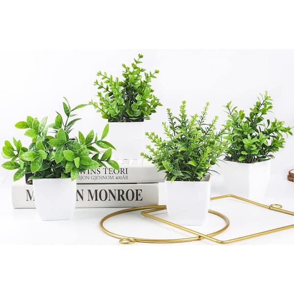 7.18 in. Artificial Green Fake Plants Mini Greenery Potted Plants, 4 Pack