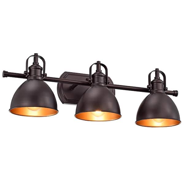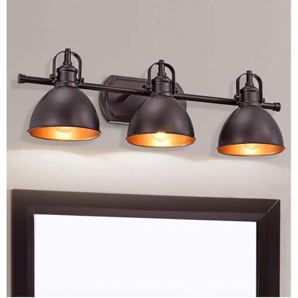 7.3 in. H x 24 in. W x 7.7 in. D 3-Light Oil Rubbed Bronze Indoor Bath Vanity Light with Metal Shade