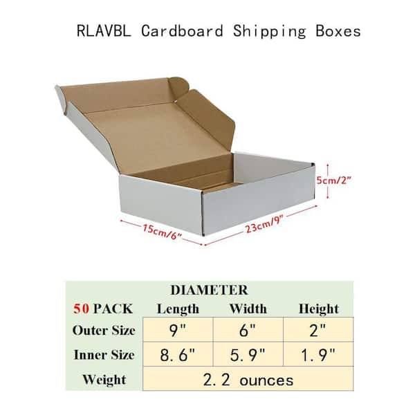 7.32 lb. 9 x 6 x 2 in. Recyclable Corrugated Cardboard Shipping Mailer Box Set White 50 Pack