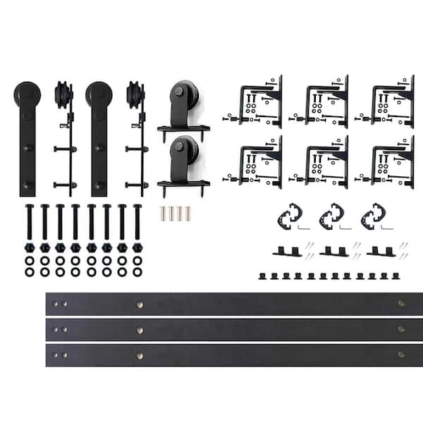 7.5 ft./90 in. Black Rustic Triple Track Bypass Sliding Barn Door Track and Hardware Kit for Triple Doors