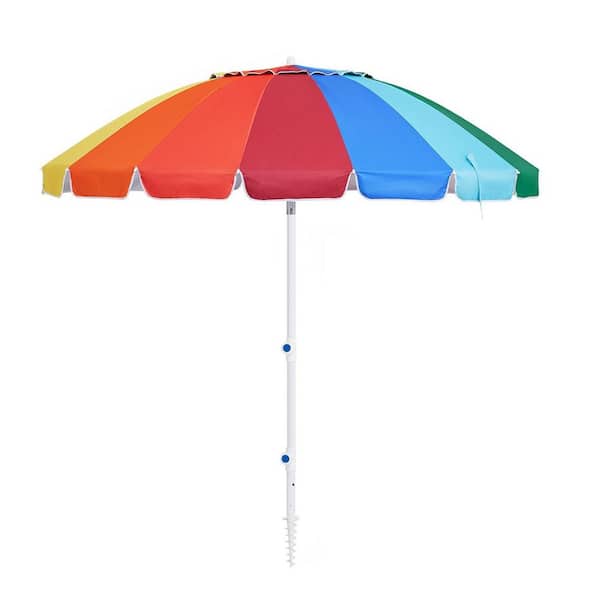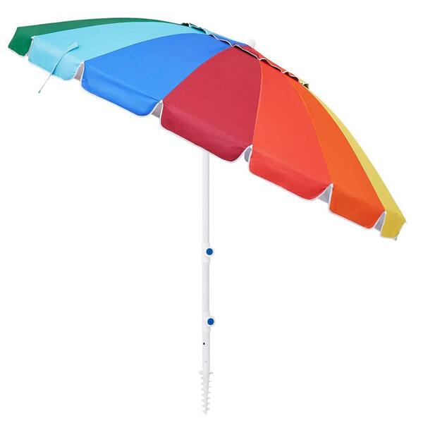 7.5 ft. Fiberglass Tilt Beach Umbrella in Rainbow with Carry Bag