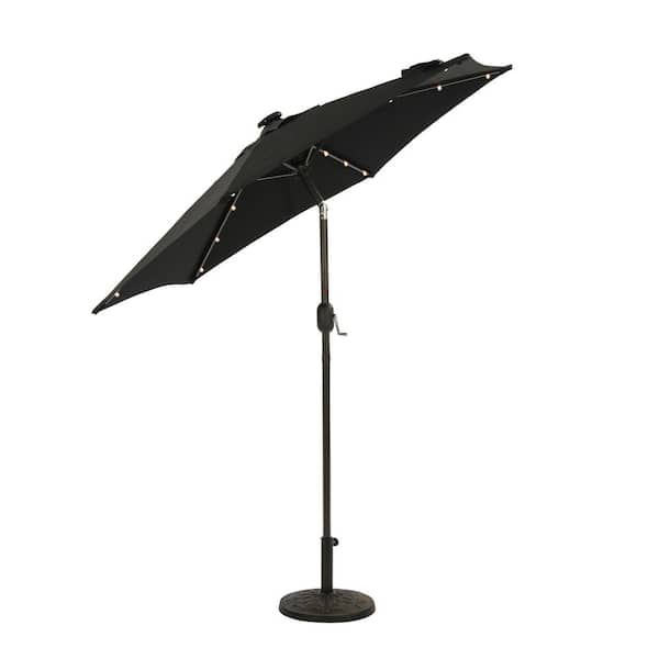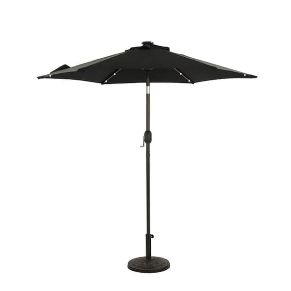 7.5 ft. Steel Market Patio Umbrella in Black with Solar LED Lighting
