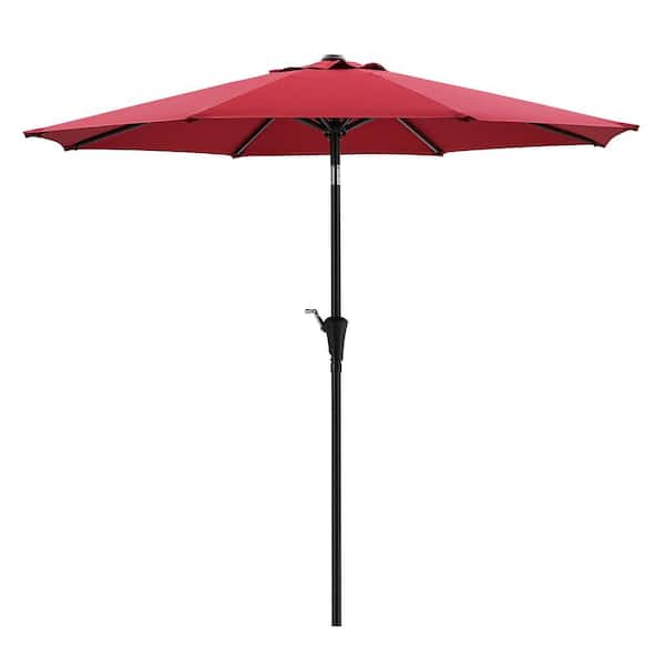7.5 ft. Steel Push-Up Patio Umbrella with Push Button Tilt, Easy Crank Lift for Market, Yard Beach Porch and Pool in Red