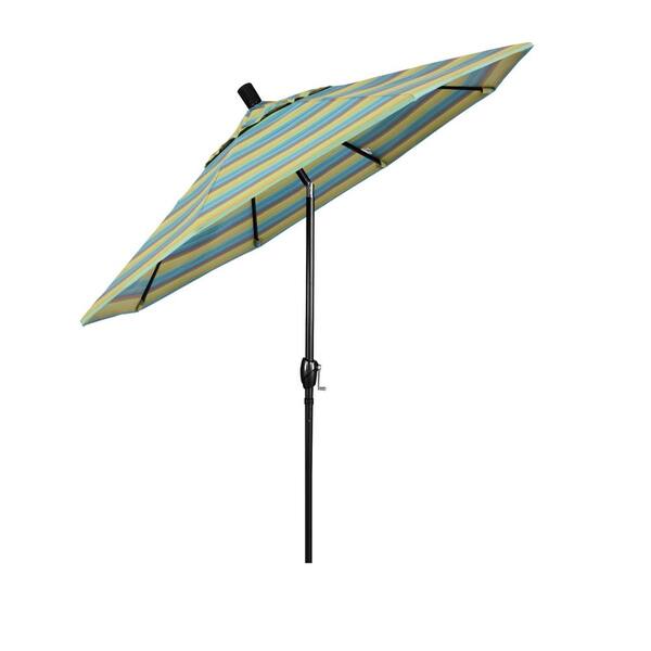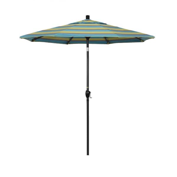 7.5 ft. Stone Black Aluminum Push Button Tilt Crank Lift Patio Market Umbrella in Astoria Lagoon Sunbrella