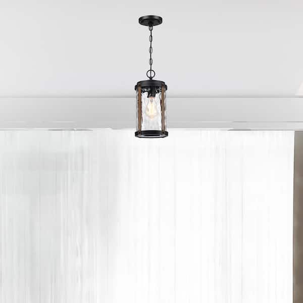 7.5 in, 1-Light Matte Black Farmhouse Modren Pendant Light with Water Glass Shade