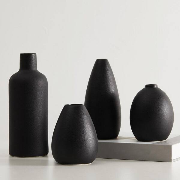 7.67 in. H Cylinder Black Ceramic Decorative Vase Set-4 Small Vases for Flowers