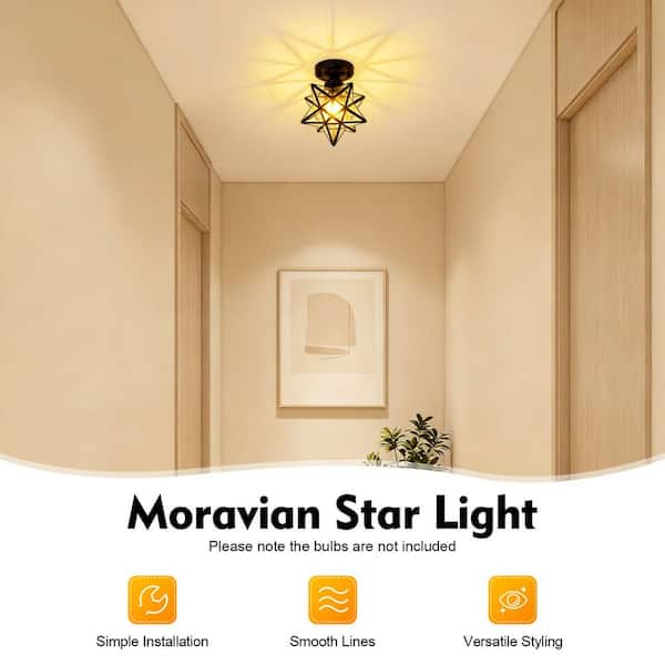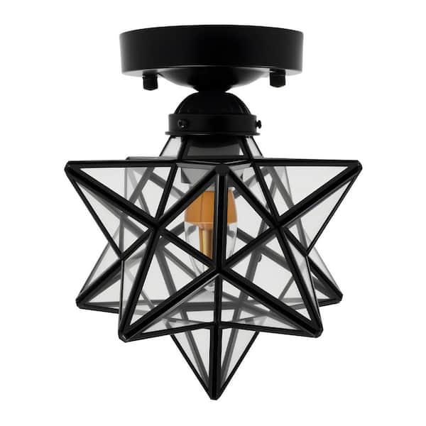 7.68 in. 1-Light Black Modern Moravian Star Semi-Flush Mount Ceiling Light with Clear Glass Shade and No Bulbs Included
