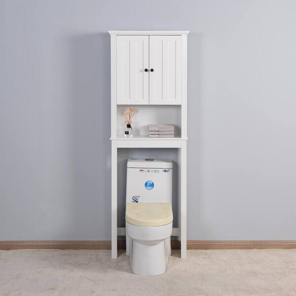 7.7 in. D x 23.6 in. W x 67.3 in. H Bathroom Wooden Space Saver White Toilet Wall Cabinet with a Adjustable Shelf