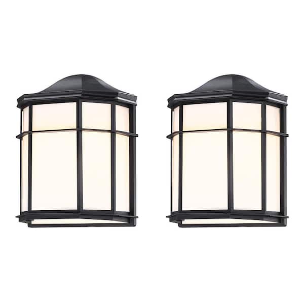 7.76 in. 1-Light Black Half Octagon LED Wall Light Sconce with Glass Shade - 2 Pack