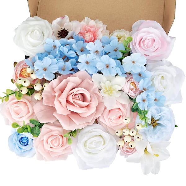 7.8 in. Blue Pink Artificial Rose Flowers Combo Box
