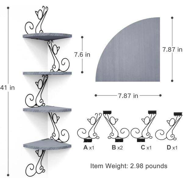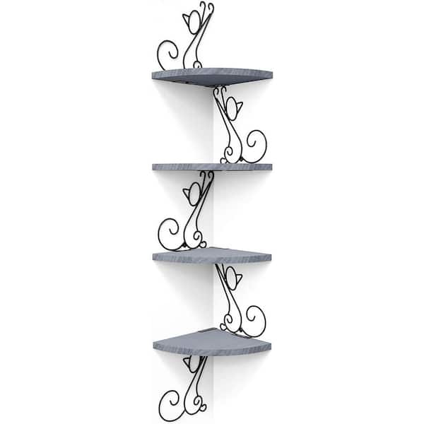 7.87 in. W x 7.87 in. D Grey Composite Decorative Wall Shelf, 4 Tier Corner Shelves