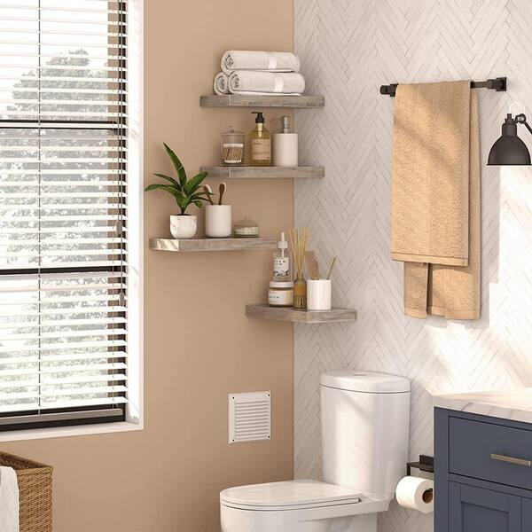 7.9 in. x 15.7 in. x 1.5 in. Greige Wood Decorative Wall Shelves