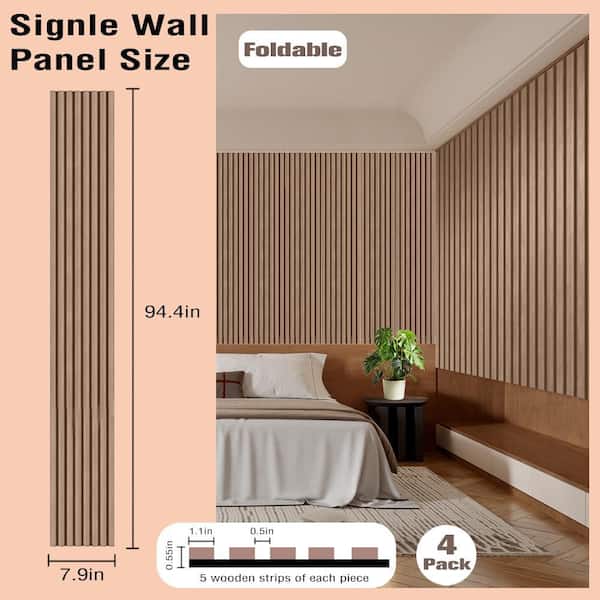 7.9 in. x 94.4 in. Foldable Wood Slat Acoustic Decorative Sound Absorbing Panels for Homes, Studios, Offices, 4 Pack