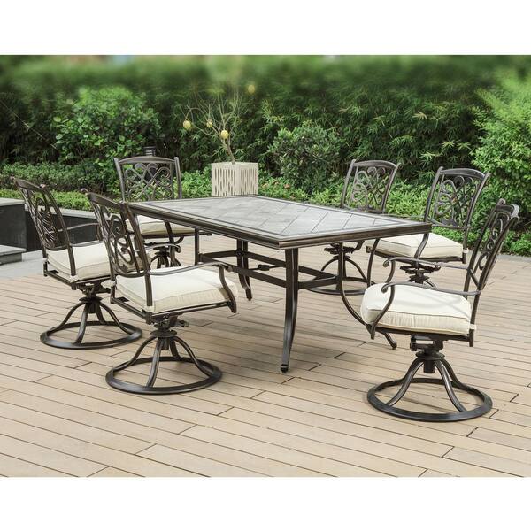 7-Piece Aluminum Outdoor Dining Set, 6-Patio Swivel Chairs with Cushions and Rectangular Dining Table W/ Umbrella Hole