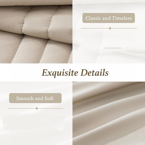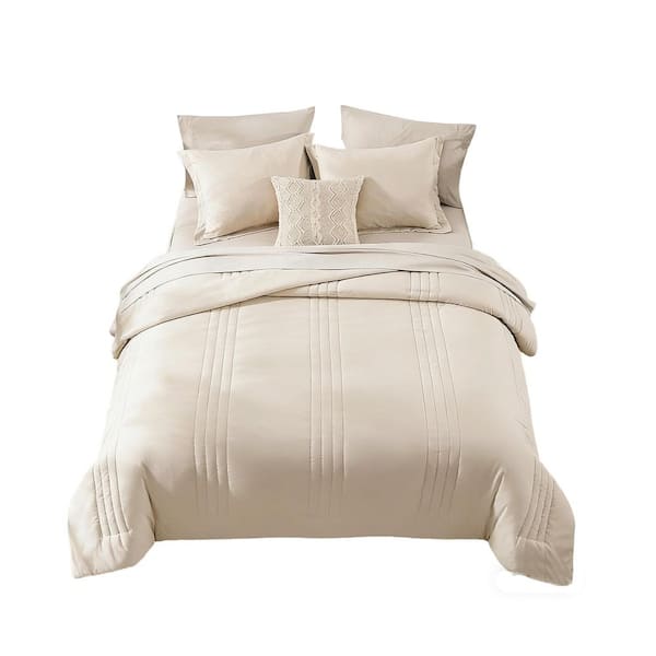 7-Piece Beige Solid Polyester Queen Comforter Set