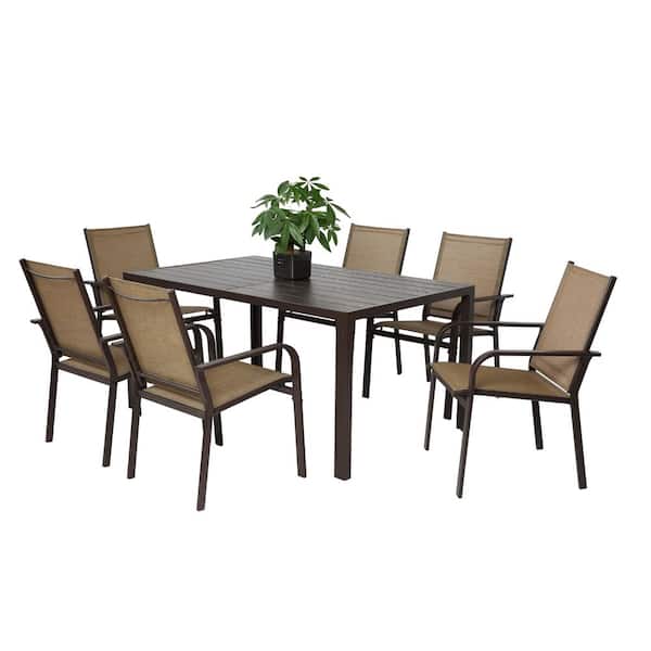 7-Piece Brown Metal Outdoor Dining Set Patio Conversation Set with Rectangular Table