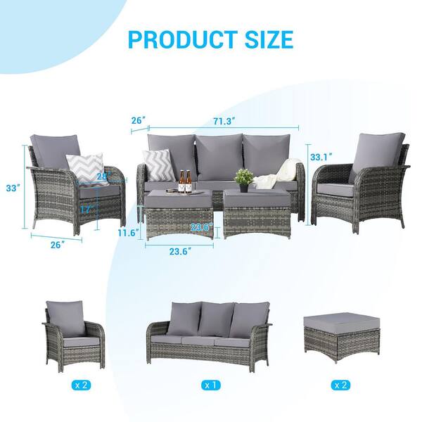 7-Piece Brown Wicker Patio Conversation Sofa Set - Outdoor Sectional Seating Set