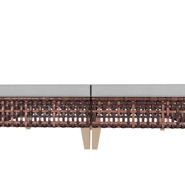 7-Piece Brown Wicker Rattan Outdoor Patio Sectional Set Sofa Set with Ottoman and Grey Cushions, for Pool Backyard