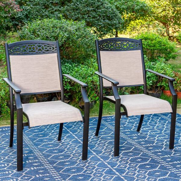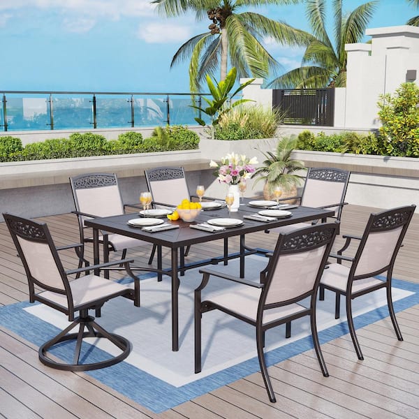 7-Piece Metal Outdoor Dining Set with 2 Sling Swivel Rockers, 6 Sling Chairs, and Rectangle Table