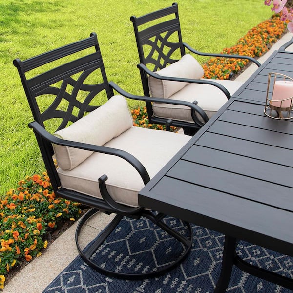 7-Piece Metal Outdoor Dining Set with Beige Cushions and Steel Rectangle Dining Table