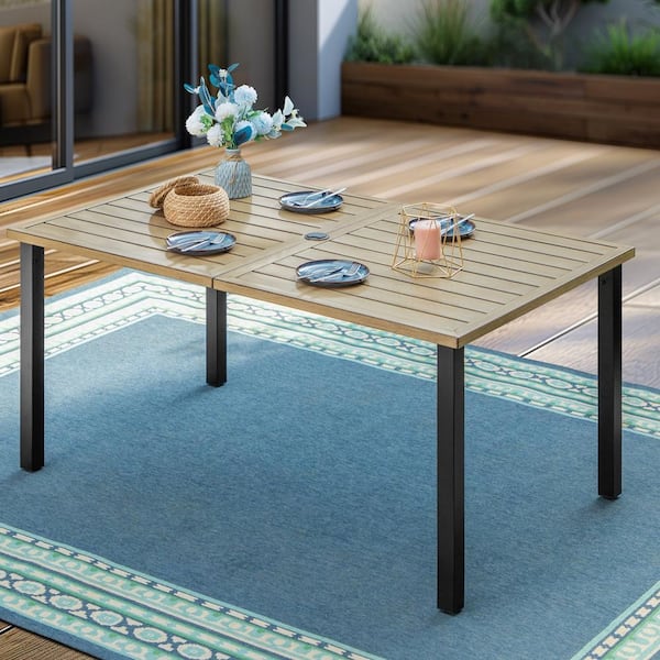 7-Piece Metal Outdoor Patio Dining Set with Wood-like Rectangular Slat Table-Top and Elegant Stackable Chairs