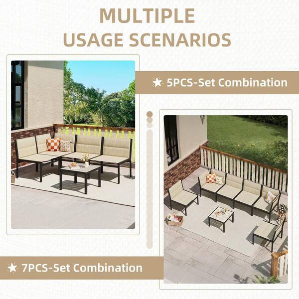 7-Piece Metal Patio Conversation Set with Yellow Seat, Coffee Table