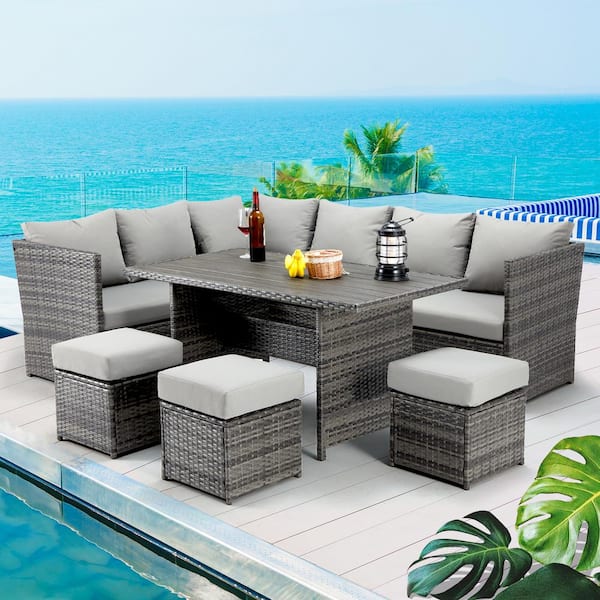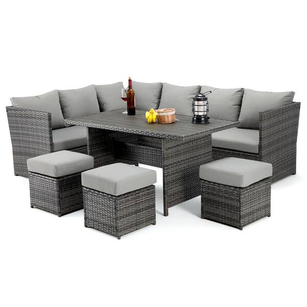 7-Piece PE Wicker Outdoor Sofa Sectional Set Conversation Set with Gray Cushions